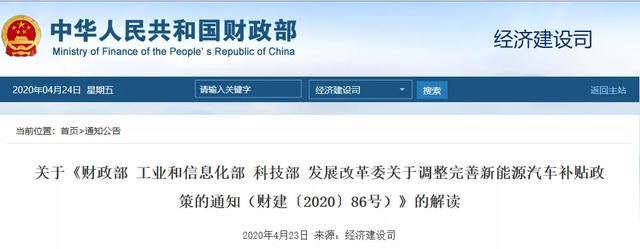 4月23日,财政部、工业和信息化部、科技部、发展改革委发布关于《财政部 工业和信息化部 科技部 发展改革委关于调整完善新能源汽车补贴政策的通知(财建〔2020〕86号)》的解读。下附政策原文: 近日,财政部、工业和信息化部、科技部、发展改革委(以下简称“四部委”)联合发布了《关于调整完善新能源汽车补贴政策的通知》(财建〔2020〕86号,以下简称《通知》)。现就相关内容解读如下: 一、《通知》出台背景 按照党中央、国务院决策部署,2009年以来财政部会同有关部门大力支持新能源汽车产业发展。在各方共同努力下,我国新能源汽车关键技术显著进步,产品性能明显提升,年销量从2009年的不到500辆增长到2019年的120.6万辆,连续五年世界第一。 受多重不利因素叠加影响,2019年我国新能源汽车销量同比下降4.0%。加之新冠肺炎疫情的冲击,1-3月份新能源汽车销量同比下降56.4%。延长补贴支持政策,有利于对冲疫情影响、促进汽车市场消费、提高综合竞争力、推动产业高质量发展。四部委在深入跟踪调研、广泛征求各方面意见基础上,形成了2020年新能源汽车补贴政策方案,报批后印发上述《通知》。 二、完善新能源汽车补贴政策的基本思路 贯彻落实党中央、国务院决策部署,保持对新能源汽车产业的扶持力度,精准施策,推动产业高质量发展。一是稳字当头,综合考虑技术进步、规模效应等因素,将原定2020年底到期的补贴政策合理延长到2022年底,平缓补贴退坡力度和节奏。二是扶优扶强,适当优化技术门槛,设置清算门槛,引导地方理性投资和企业“练好内功”,促进优势企业做大做强,加速落后产能退出,提高产业集中度。三是突出重点,按应用领域实施差异化补贴,提高政策精准度,加快公共交通及特定领域汽车电动化进程。四是落实责任和强化监管。完善配套政策,落实相关方责任,强化资金监管,进一步营造行业发展良好生态。 三、延长补贴期限的考虑 按照党中央、国务院决策部署,中央财政从2009年起对新能源汽车购置给予补贴。按照原计划,到2020年底我国新能源汽车可实现《节能与新能源汽车产业发展规划(2012-2020年)》确定的500万辆保有量目标,后续通过非补贴政策接力,产业将逐步实现市场化发展,补贴政策在实现预期目标后退出。 根据产业发展新形势,针对产业发展存在的问题,为促进汽车消费,3月31日国务院常务会议确定,将今年底到期的新能源汽车购置补贴政策延长2年。主要考虑: 一是助力解决问题、推进产业高质量发展。我国新能源汽车发展起步早、开局好,但当前仍存在一些现实困难,新能源汽车成本仍然较高,难以与传统车竞争。需要继续给予支持,巩固和扩大来之不易的发展成果。 二是顺应发展趋势、提升综合竞争能力。从国际汽车产业发展趋势看,电动化是转型升级的方向。欧美等汽车发达国家都在加大支持力度。在此情况下,有必要延续对新能源汽车的财税政策支持,保持良好的发展势头,提升产业竞争力。 三是对冲疫情影响、促进汽车消费。新冠肺炎疫情对新能源汽车市场造成较大冲击。延长优惠支持政策,有助于拉动市场消费,对冲疫情影响,也有利于支持相关行业和企业加快复工复产。 四、适当优化技术指标的考虑 近年来,新能源汽车补贴政策坚持“扶优扶强”的政策导向,通过不断提高技术门槛等措施促进新能源汽车技术明显进步。纯电动乘用车续驶里程由2015年平均约160公里增长到2019年平均约350公里,平均电耗由2015年约17千瓦时/百公里降低到2019年约14千瓦时/百公里,动力电池系统能量密度由2015年平均约95瓦时/公斤提高到2019年平均约150瓦时/公斤。 目前,新能源汽车产品技术进入稳步提升的阶段,提升动力电池系统能量密度等指标与产品安全性的矛盾有所显现。为此,四部委按照技术上先进、质量上可靠、安全上有保障的原则,保持技术指标体系总体稳定,给予企业稳定的预期,推动企业进一步提升产品技术水平和安全可靠性。2020年保持大部分技术指标门槛要求不变,2021年-2022年原则上保持稳定,根据技术进步、产业发展情况等适当调整。同时,支持“车电分离”等新型商业模式发展,鼓励企业研发生产具有先进底层操作系统、电子电气系统架构和智能化网联化特征的新能源汽车产品。 五、加快公共交通及特定领域电动化的考虑 公共交通领域车辆油耗高、污染排放大,每辆中型燃油客车污染排放是乘用车的11.8倍。我国公共交通及特定领域车辆电动化比例低,初步统计,截至2019年底公务、城市公交、道路客运、出租、网约、环卫、城市物流配送、邮政快递、机场、港口、矿山领域汽车保有量约1000多万辆,电动化比例不到7%。加快电动化有利于实现快速拉动消费、壮大产业规模、减少污染排放和降低石油对外依存度等多重目标。 为推动公共交通及特定领域加快电动化,促进新能源汽车消费,此次政策调整加大了对上述领域的支持,2020年补贴标准不退坡。在补贴资金清算时,四部委将综合参考公告、行驶证、车辆使用单位、国家监控平台等多角度信息,并进行现场核查,综合确定各领域车型类别。 六、设置年度补贴200万辆上限的考虑和操作办法 新能源汽车产业发展最终要靠市场的力量。在产业发展初期,通过补贴等方式降低新能源汽车与传统汽车的成本差距,有助于快速扩大规模、启动市场。随着产销规模不