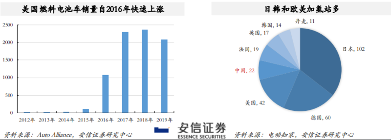 环保压力以及化石能源危机将驱动能源结构调整,而氢能源作为战略性高效的清洁能源,目前正在受到国内外的广泛重视,处于产业快速发展的时段。随着燃料电池的快速发展和推广,氢能源作为全球能源可持续发展和战略转型的重要技术,已开始发力于全球交通领域。根据2019年《中国氢能及燃料电池产业白皮书》,氢能将成为中国能源体系中的重要组成部分,若2050年氢能应用达到10%,需氢气量约6000万吨,全国加氢站达10000座以上。氢能在交通运输和工业领域得到普及应用,氢燃料电池车将达到500万辆/年,固定式发电装置达到2万台套/年。 从汽车行业的生命周期来看,目前传统燃油车处于相对成熟阶段,在新能源汽车高速发展倒逼下,传统车企加速转型,部分国内外领先车企持续加码氢燃料电池汽车的开发与应用。2019年全球与中国氢燃料电池汽车销量分别为7500辆与2737辆,同比分别增长36%与 80%。截至2018年底,全球加氢站数目达到369座,其中日本、德国和美国三国合计198座,占全球总数的54%,显示出三国在氢能源与燃料电池领域的领先地位。 较长的时间内将是多种技术路线并存发展,其中锂动力电动汽车、燃料电池汽车将逐步取代传统燃油车,趋势将不可逆转。相较而言,锂动力电池比较适合乘用车领域,燃料电池比较适合于长距离的重载和商用车领域,目前处于导入期的提速阶段。 氢燃料电池汽车具有高效、零排放、长续航里程、加注时间短等优势,其发展空间广阔。根据中商产业研究院的预测,至2032年全球燃料电池汽车销量将超过500万辆,2020~2032年期间CAGR 高达43%。据中国汽车工业协会预测,到2035年,我国氢燃料电池汽车将会形成428万辆保有量规模。未来十余年,燃料电池汽车将有望成为全球汽车市场增速最快的细分领域。 2019年全球氢燃料电池乘用车销量超过7500辆,其中现代NEXO氢燃料电池汽车销量为4818辆,丰田Mirai销量2407辆,合计占比超过90%。日本汽车制造商自20世纪90年代起开始研究燃料电池技术,2014年丰田推出首款商用化的燃料电池车-Mirai,成为燃料电池车发展历史上的重要里程碑。截止2019年, Mirai累计销售过万辆。2019年底,丰田发布第二代Mirai,预计2020年上市,新车改善了燃料电池的性能以及增加了氢气的储备容量,相比第一代增加了30%的续航里程。1998年,现代成立麻北新能源技术研究院研发燃料电池技术,从此开启了现代研发燃料电池的历程。经过多年的研发,现代2013年推出量产的ix35 FCEV车型,2018年1月推出了第二代量产氢燃料电池车NEXO,2019年NEXO全球销量高达4818辆,是第二名Mirai的两倍。 来源:巨丰财经 欢迎关注氢云链,获得更多氢能产业资讯。 免责声明:氢云链致力于好文推送,尊重原创,版权归属原作者所有,如涉及作品版权烦请联系我们予以删除! |
