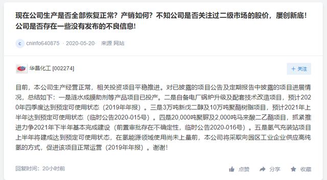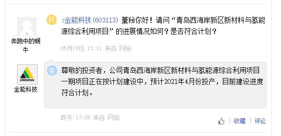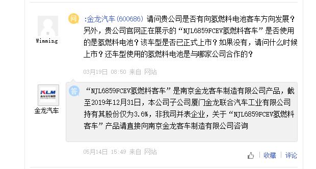 「氢问董秘」是氢云链旗下的全新栏目,主要包含投资者在互动平台上针对氢能、燃料电池等内容方面进行提问和相关企业的回复,每天一期。在这里,你可以全面了解企业的氢能发展动态。 金能科技问: 董秘你好!请问“青岛西海岸新区新材料与氢能源综合利用项目”的进展情况如何?是否符合计划? 金能科技答: 尊敬的投资者,公司青岛西海岸新区新材料与氢能源综合利用项目一期项目正在按计划建设中,预计2021年4月份投产,目前建设进度符合计划。 华昌化工问: 现在公司生产是否全部恢复正常?产销如何?不知公司是否关注过二级市场的股价,屡创 华昌化工答: 目前,本公司生产经营正常,相关投资项目平稳推进。对已披露的项目公告及定期报告中披露的项目进展情况,总结如下:一是涟水成膜助剂等产品项目已投产。二是自备电厂锅炉升级及配套技术改造项目,预计2020年四季度达到预定可使用状态(2019年年报)。三是3万吨新戊二醇及10万吨聚酯树脂项目,预计2021年上半年达到预定可使用状态(临时公告2020-015号)。四是20,000吨聚脲及2,000吨马来酸二乙酯项目,抓紧推进力争2021年下半年基本完成建设(前置审批存在不确定性,临时公告2020-016号)。五是氢气充装站项目上半年将建成达到预定可使用状态,在氢能源领域使用尚未上量前,本公司将采取向园区工业企业供应高纯氢的方式,促进该项目正常运营(2019年年报)。谢谢! 金龙汽车问: 请问贵公司是否有向氢燃料电池客车方向发展? 另外,贵公司官网正在展示的“NJL6859FCEV氢燃料客车”是否使用的是氢燃料电池?该车型是否已正式上市?如果没有,请问什么时候上市?还车型使用的氢燃料电池是与哪家公司合作的? 金龙汽车答: “NJL6859FCEV氢燃料客车”是南京金龙客车制造有限公司产品,截至2019年12月31日,本公司子公司厦门金龙联合汽车工业有限公司持有其股份仅为3.6%,非我司并表企业,关于“NJL6859FCEV氢燃料客车”产品请直接向南京金龙客车制造有限公司咨询 欢迎关注氢云链,获得更多氢能产业资讯。 |