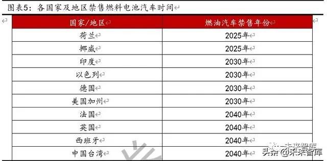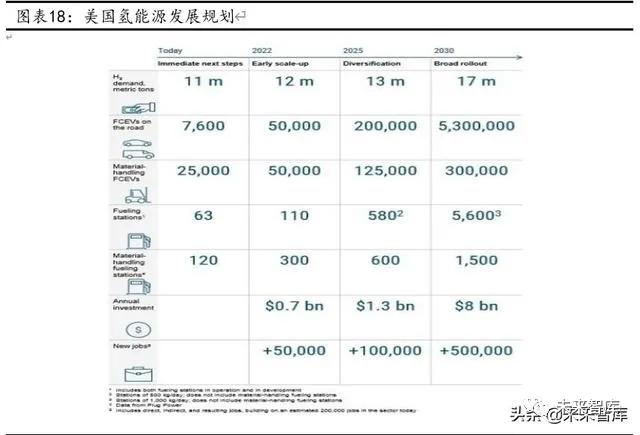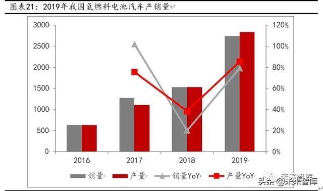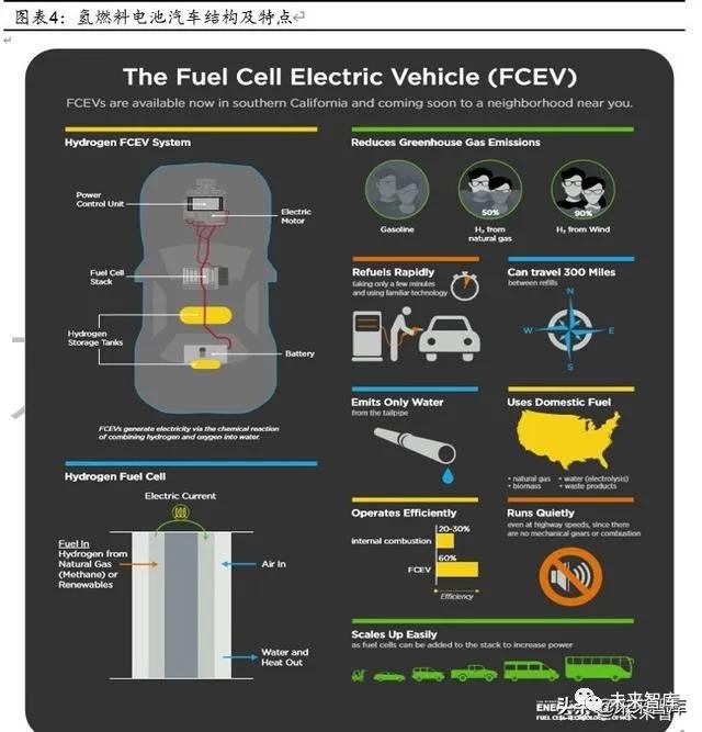 | 导语 2020年4月,我国将氢能写入《能源法》正式确定其为能源,同时延长燃料电池汽车购车补贴至2022年末,并计划在4年内建立氢能及燃料电池汽车产业链。后期随着加氢站数量的增长和燃料电池技术的提升, 燃料电池汽车总拥有成本仍有较大下降空间。 1、全球进入燃料电池汽车加速布局阶段,我国以商用车为主 1.1 燃料电池汽车是燃料电池的主要应用 早在20世纪60年代,燃料电池就已成功应用于航天飞行领域,后期随着燃料电池技术水平的提升及其发电效率高、环境友好、噪音低等优势而受到了世界各国的关注,得到了更广泛的应用。根据燃料电池下游应用场景的不同,可将其划分为便携式、固定式和交通运输三类。 由各类燃料电池的出货量可以看出,目前燃料电池下游应用中,便携式燃料电池出货量最低呈下降趋势;固定式燃料电池出货量几乎零增长;交通运输类燃料电池出货量逐年上涨,且其功率出货量占据燃料电池总功率出货量的绝大部分。2019年,全球燃料电池总出货功率高达1.1GW,其中交通运输类燃料电池出货功率达到900MW,占总功率的80%,同比2018年上涨55%。由此可见,三类燃料电池中交通运输类发展最快,而现阶段生产的交通运输类燃料电池绝大多数用于汽车驱动,换句话说,燃料电池汽车目前正处于高速推广阶段。 1.2 燃料电池汽车概述 燃料电池汽车(Fuel Cell Electric Vehicles,FCEV)是以燃料电池产生的电能为驱动力的新型电动汽车,由燃料电池电堆、驱动电机、动力电池、储氢罐等部分构成。根据燃料电池汽车的用途不同,可将其划分为商用车和乘用车两类,其中商用车是指大 应用于电动汽车的燃料电池主要为以氢为燃料的、比能量高、工作温度低、启动快、无泄漏的质子交换膜燃料电池(PEMFC)。且燃料电池汽车的产物只有水,可极大地降低温室气体的排放量,实现零排放或几乎零排放。在全球变暖、尾气排放超标、环境问题日益凸显的今天,全球都在提倡节能减排,甚至已有部分国家宣布将全面禁止销售传统燃油汽车,燃料电池汽车将成为其最好的替代品。 燃料电池汽车完美地避开了电动汽车和燃油汽车的缺点,且兼备两者的优点:清洁无污染、高效、低噪音、续航里程长、加氢速度快、续航里程长,且氢能源来源广泛可再生,是真正意义上的清洁汽车,日后有望成为汽车行业的主导 燃料电池汽车优势众多,但现阶段推出燃料电池汽车的车企较少,且燃料电池汽车产销量低、难以普及,主要原因在于以下两方面: 一、燃料电池电堆等核心零件的技术门槛和制造成本较高,尚未实现大规模量产, 因而燃料电池汽车整体造价相对较高,尽管各国家/地区为推广燃料电池汽车已推出了相应的购车补贴政策,但现阶段燃料电池汽车的售价相较电动车仍处于高位,以国产燃料电池汽车上汽荣威950为例,该款产品的补贴售价约为50万元,目前仅具备小批量生产能力。使得众多消费者望而却步。 后期随着技术水平的提升以及量产带来的规模效应,燃料电池系统成本仍存在较大的下降空间。据美国能源部(DOE)公布的数据显示,当燃料电池产量为1000台时, 燃料电池电堆成本为118美元/kW、燃料电池系统成本为179美元/kW;若产量达到50 万台,则燃料电池电堆成本可下降至19美元/kW、燃料电池系统成本则可降至45美元/kW,届时燃料电池汽车的整车成本及售价也将有所下调,燃料电池的产销量将大幅上涨。 二、加氢站建设成本高昂且尚未普及,燃料电池汽车运行范围受限。燃料电池汽车与加氢站密不可分,而目前全球范围内加氢站数量有限且其建设成本远高于充电桩, 燃料电池汽车的运行范围也因此受限。以建设成本最低的外供高压氢加氢站为例,据美国加州能源局的研究数据显示,现阶段建设一座外供高压氢加氢站的总成本仍高达200万美元 目前各国均已进入加氢站加速建设阶段,截至2019年底,全球共有432座加氢站投入使用,主要分布在欧洲(德国、法国、荷兰、瑞士等)、亚洲(日本、韩国、中国) 和北美,其中有83座为2019年新增(欧洲36座、亚洲38座、北美8座、阿拉伯地区1 座)。此外,还有226座加氢站正处于规划阶段。当加氢站实现规模化建设,建设速度达到100套/年时,建设成本有望下降30~40%。加氢站普及之时,便是燃料电池汽车盛行之日 1.3各主要国家燃料电池汽车发展现状 燃料电池汽车产业现已进入高速发展阶段,2019年全球氢燃料电池汽车销量更是大幅上涨,同比2018年涨幅高达90%。目前燃料电池汽车主要在亚洲(日本、韩国、中国)、北美以及欧洲部分国家销售,2019年,燃料电池汽车销量前三名的国家分别是韩国、中国和美国。 1.3.1 日本 基于国家的地理环境等特性,日本化石能源较为匮乏,且日本十分重视环境保护,因此日本十分重视可再生能源的发展,因而积极投入氢能源以及氢燃料电池的研发,致力于建设氢能源社会,早在1973年日本就已成立“氢能源协会”致力于氢能源技术的研发,2013年在《日本再复兴战略》中将发展氢能源确定为国策,并开始投入加氢站的建设。现阶段日本为加快氢能源及燃料电池的商业化进程,已出台多项利好政策并取得了喜人的成绩。截至2019年,日本已投入使用的加氢站数量为127座,位居世界第一。根据2017年末发布的《氢能源基本战略》显示,日本计划于2025年投入使用320 座加氢站,2030年达到900座。 燃料电池汽车方面,日本目前以燃料电池乘用车为主,