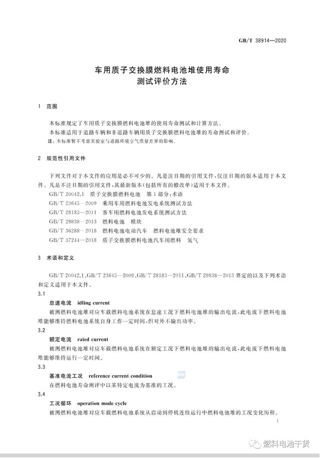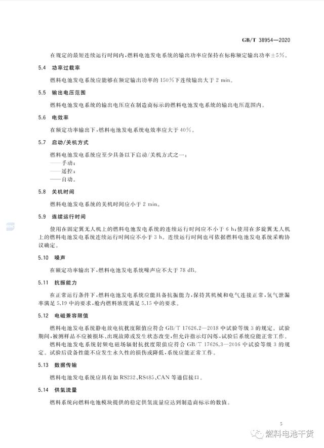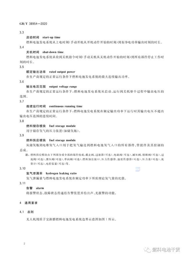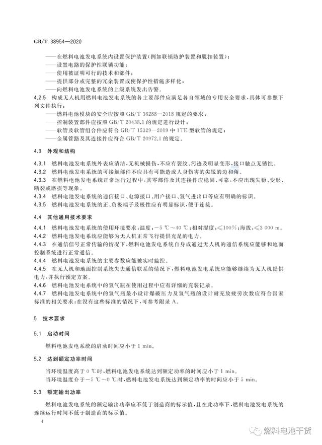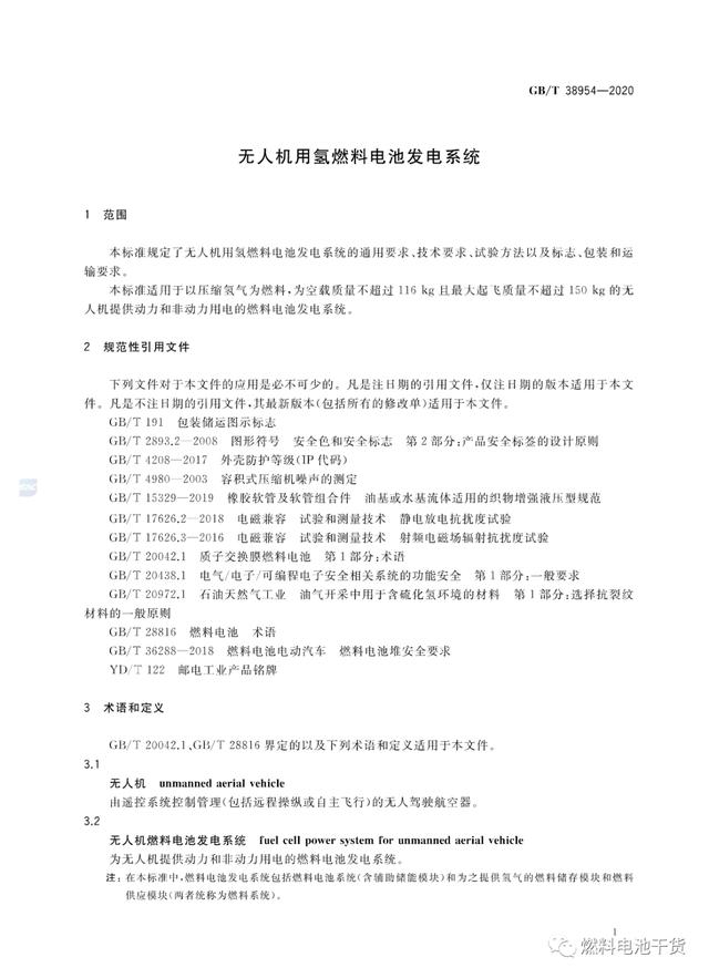 近日,《车用质子交换膜燃料电池堆使用寿命测试评价方法》、《无人机用氢燃料电池发电系统》和《燃料电池 术语》三项燃料电池国家标准正式发布,上述国标将于2021年1月1日起正式实施。其中,《车用质子交换膜燃料电池堆使用寿命测试评价方法》国标首次对电堆的耐久性(寿命)测试提出要求和计算方法;《无人机用氢燃料电池发电系统》国标首次规定了无人机用燃料电池系统各项要求,成为全球首个国家级无人机用燃料电池发电系统标准。 《GB/T 38954-2020 无人机用氢燃料电池发电系统》 来源:国家标准委员会 燃料电池干货 |