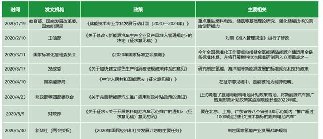 2019年-2020年两会氢能相关比较 来源:公开资料,钢联能化整理 02、2020年重磅级氢能政策密集颁布