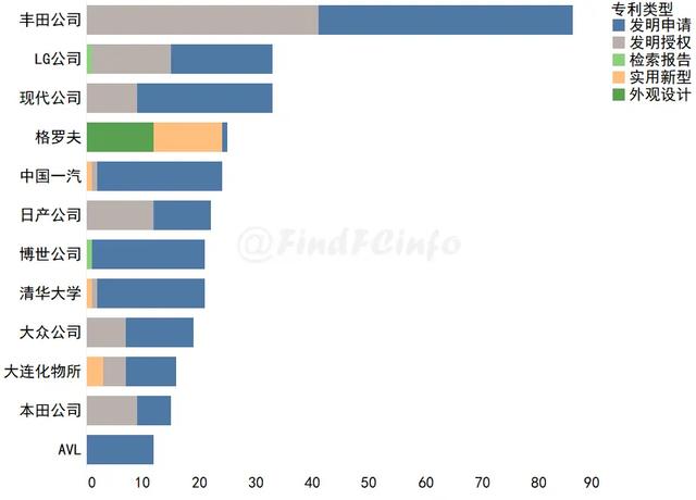 一、整体情况介绍1.1 专利公开地域情况 2020年5月,燃料电池领域在全球范围内公开/授权的专利共1077件,较上月相比(1106),数量有小幅下降。本月,中国地区专利公开数量与上月(576)有一定增加,发明申请专利公开较上月有一定增加。部分公开国家/地区/组织以及数量情况如图1-1所示。 图1-1 部分地区燃料电池专利5月公开/授权情况 1.2 专利技术分支情况 图1-2 燃料电池专利5月公开/授权的技术分布 1.3 申请人专利申请情况 将专利申请人经过标准化处理后,对标准化申请人的专利申请数量进行统计,如图1-3所示。本月,丰田公司公开专利86件,其中发明申请和发明授权数量分别为45、41件;LG公司和现代公司均公开专利33件,其中LG公司授权公告的发明专利共计14件,现代公司公开的发明申请专利共计24件;日产公司公开专利共22件,其技术主要涉及系统控制和电堆;格罗夫公开专利25件,实用新型专利和外观设计专利占绝大多数;中国一汽共公开专利24件、博世公司和清华大学均公开专利20件。 图1-3 标准化申请人专利5月公开/授权排名 在燃料电池应用方面,长江勘测规划设计研究有限责任公司公开了两件关于利用氢燃料电池作为水电站保安电源、备用电源的专利;中国华能集团清洁能源技术研究院有限公司公开了一件关于基于燃料电池的楼宇综合能源供应系统的专利;O'ROURKE研究集团公司公开了一件关于采用燃料电池用作电力供应的洗衣干衣一体机的专利;国鸿氢能与佛山(云浮)氢能产业与新材料发展研究院共同申请了一件关于利用燃料电池作为应急电源的专利。 二、国内申请人专利公开情况2.1 国内整车厂5月专利公开情况 国内整车厂在5月的专利公开情况如图2-1所示。其中,格罗夫公开专利25件;中国一汽公开24件专利,主要涉及双极板(石墨型、金属型)、膜电极组件(催化剂、气体扩散层、自增湿质子交换膜)、热管理等;北汽集团与申龙客车在本月均公开5件相关专利,其中申龙客车的专利技术主要涉及燃料电池客车相关控制等。其他在5月公开相关专利的整车厂还包括众宇动力、武汉泰歌、长城汽车、东风汽车、飞驰汽车、江淮汽车等。 图2-1 整车厂5月专利公开情况 2.2 燃料电池企业5月专利公开情况 国内燃料电池企业在5月的专利公开情况如图2-2所示。其中,潍柴动力公开专利10件,主要涉及空气系统、氢气泄露检测、活化等技术;上海神力公开专利9件,主要涉及双极板粘接、检漏,水管理及启动等相关技术;格力电器与上海 图2-2 燃料电池企业5月专利公开情况 2.3 科研院所(校)5月专利公开情况 燃料电池相关科研院所(校)在5月的专利公开情况如图2-3所示。其中,清华大学公开专利21件,其技术主要涉及氢气管路安全、双极板、低温启动等;佛山科学技术学院本月公开专利5件,主要涉及催化电极制备;中科院大连化物所公开专利16件,其技术主要涉及风冷型金属双极板、催化剂、膜电极检漏以及启动控制等;其他在5月公开相关专利的科研院所(校)还包括:同济大学、江苏大学、大连理工大学、西安交通大学、山东理工大学等。 图2-3 燃料电池科研院所(校)5月专利公开情况 来源:燃料电池专利情报 免责声明:氢云链致力于好文推送,尊重原创,版权归属原作者所有,如涉及作品版权烦请联系我们予以删除! |