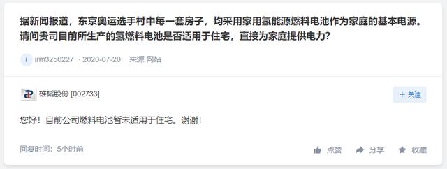 | 「氢问董秘」是氢云链旗下的全新栏目,主要包含投资者在互动平台上针对氢能、燃料电池等内容方面进行提问和相关企业的回复,每天一期。在这里,你可以全面了解企业的氢能发展动态。 宏盛股份问: 针对燃料电池汽车,四部委取消了对消费者给予购置补贴的方式支持燃料电池汽车推广,调整为选择有基础、有积极性、有特色的城市或区域,重点围绕关键零部件的技术攻关和产业化应用开展示范,中央财政将采取“以奖代补”方式对示范城市给予奖励。宏盛股份如何抓住此机遇?有何举措给深套投资人带来希望? 宏盛股份答: 感谢您对公司的关注!感谢您提供的相关资讯! 大洋电机问: 属于再生能源电池吗 大洋电机答: 您好!公司的氢燃料电池用到的氢气属于可再生能源。谢谢! 雄韬股份问: 据新闻报道,东京奥运选手村中每一套房子,均采用家用氢能源燃料电池作为家庭的基本电源。请问贵司目前所生产的氢燃料电池是否适用于住宅,直接为家庭提供电力? 雄韬股份答: 您好!目前公司燃料电池暂未适用于住宅。谢谢! 欢迎关注氢云链,获得更多氢能产业资讯。 |