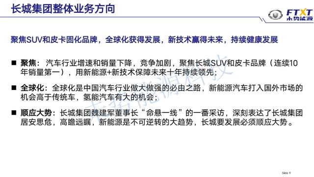 | 2020年7月24日,氢能发展战略研讨会在中国石化集团公司举办。长城集团未势能源科技有限公司总裁陈雪松介绍了长城集团在氢能汽车发动机和储氢方面的具体做法。 长城为什么搞氢能?陈雪松称,通过分析,长城汽车认为能源环境和交通运输行业发展大趋势是能源安全及低碳化,交通运输智能及电气化,实现以上目标,氢能+燃料电池发电技术是有效的途径之一,氢能也是化解中国能源依赖和降低碳排放的重要路径。 他介绍,未势能源在长城控股集团下孵化了三年,2019年独立。目前,未势能源已布局上海、保定、日本、德国四大研发中心,组建起文化多元、技术领先的研发团队,并严格遵循V模型开发流程打造车规级燃料电池动力系统及零部件,产品涵盖燃料电池发动机、电堆、35MPa/70MPa车载氢系统、瓶阀及减压阀等,目标是到2025年能够成为中国氢能技术领导者,到2030年成为全球氢能产品和工程服务主要供应商。 “做一个事情成还是不成,实际上还是在人”。陈雪松介绍,长城控股集团在氢能领域规划了上千人的研发团队,目前有330人,其中53位是外聘专家,团队有20几位博士和142位硕士。从研发人的经验和知识角度而言,都很有竞争力,在研发过程中还与全球的顶尖机构合作包括清华大学、交通大学、同济大学等。 通过四年发展,长城基本上已经完成了产业布局,研发体系和能力建设,目前正在做技术攻关和产品验证,未来将寻找产业的落地和开拓市场的机会。 陈雪松重点介绍了长城在氢能汽车发动机和储氢方面的做法。在燃料电池发展方面,长城采用从“剥洋葱”的方式,从上至下一层层分解。氢能的安全性方面,长城在一开始产品定义时候就要通过体系把质量、寿命、安全指标一层层分解,甚至设定某一个应用的场景、最终的产品的材料等级。 开发氢能汽车发动机,还要平台、体系,以及开发过程中对所有零部件要有设计的手段、方法和检测工具。长城汽车做整车开发到发动机、核心零部件、控制,乃至整个质量管理都有严格的流程标准、和体系来保障。由于供应商无法满足长城需要的性能,长城不得不自己开发一些零部件,比如空压机、增湿器、氢循环等核心的零部件。 陈雪松介绍,长城集团通过年产1000套的生产线开发出了一个大功率的130千瓦的金属板电堆,该生产线可以充分保障电堆的一致性。通过分析,尽管初期商用车的规模化因为能源供给的方便性会超出乘用车,但最终,乘用车还是主市场。 在储氢方面,陈雪松称,长城集团已经开发出液体氢和四型瓶产品,现在也在逐渐做商用车大型长瓶子,同时开发与其配套的高压氢瓶阀,体积小,重量轻,成本低。长城在液氢方面,也充分投入,指出标准用于推广,协助国家制定规范化标准。在材料方面,陈雪松提出材料的进步会决定5年或10年以后这个行业的性能和成本。 他在总结中表示,第一、氢能+燃料电池 演讲内容如下: |