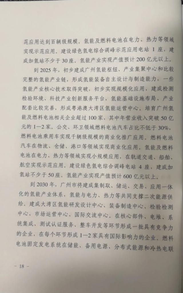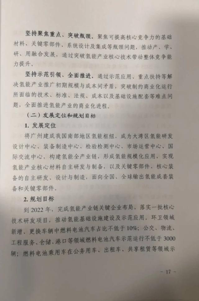 | 国内氢能发展如火如荼,作为经济大省、能源相对匮乏的广东省,广州市率先布局氢能产业发展。7月30日上午,广州市人民政府新闻办公室召开《广州市氢能产业发展规划(2019-2030)》发布会。 目标到2022年,完成氢能产业链关键企业布局,落实一批核心技术研发项目,推动氢能基础设施建设及示范应用。环卫领域新增、更换车辆中燃料电池汽车占比不低于10%;公交、物流、工程服务、仓储、港口等领域燃料电池汽车示范运行不低于3000辆。建设绿色氢能电综合调峰示范应用电站1座,建成加氢站不少于30座。氢能产业实现产值预计200亿元以上。 到2025年,形成大湾区氢能运营中心,培育广州氢能及燃料电池相关企业100家,其中年营业收入突破50亿元的1-2家。公交、环卫领域燃料电池汽车占比不低于30%。建设绿色氢能电综合调峰电站4座,建成加氢站不少于50座。氢能产业实现产值预计600亿元以上。 到2030年,建设绿色氢能电综合调峰电站不低于10座,建成加氢站100座以上。氢能产业实现产值预计2000亿元以上。 具体详见下图: |