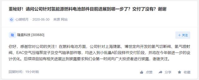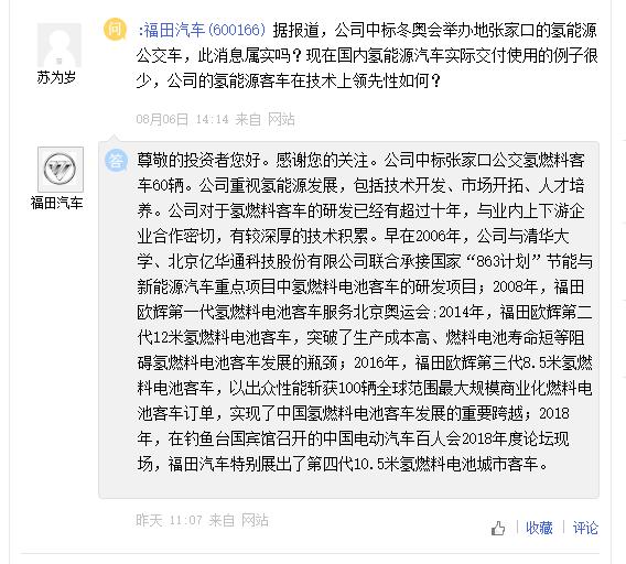 「氢问董秘」是氢云链旗下的全新栏目,主要包含投资者在互动平台上针对氢能、燃料电池等内容方面进行提问和相关企业的回复,每天一期。在这里,你可以全面了解企业的氢能发展动态。 福田汽车问: 据报道,公司中标冬奥会举办地张家口的氢能源公交车,此消息属实吗?现在国内氢能源汽车实际交付使用的例子很少,公司的氢能源客车在技术上领先性如何? 福田汽车答: 尊敬的投资者您好。感谢您的关注。公司中标张家口公交氢燃料客车60辆。公司重视氢能源发展,包括技术开发、市场开拓、人才培养。公司对于氢燃料客车的研发已经有超过十年,与业内上下游企业合作密切,有较深厚的技术积累。早在2006年,公司与清华大学、北京亿华通科技股份有限公司联合承接国家“863计划”节能与新能源汽车重点项目中氢燃料电池客车的研发项目;2008年,福田欧辉第一代氢燃料电池客车服务北京奥运会;2014年,福田欧辉第二代12米氢燃料电池客车,突破了生产成本高、燃料电池寿命短等阻碍氢燃料电池客车发展的瓶颈;2016年,福田欧辉第三代8.5米氢燃料电池客车,以出众性能斩获100辆全球范围最大规模商业化燃料电池客车订单,实现了中国氢燃料电池客车发展的重要跨越;2018年,在钓鱼台国宾馆召开的中国电动汽车百人会2018年度论坛现场,福田汽车特别展出了第四代10.5米氢燃料电池城市客车。 隆盛科技问: 董秘好!请问公司针对氢能源燃料电池部件目前进展到哪一步了?交付了没有?谢谢 隆盛科技答: 你好,感谢您对公司的关注!在燃料电池方面,公司针对上海捷氢、博世定向开发的氢气切断阀、氢气喷射阀、EAC空气压缩泵定子及空气轴承部件等,均进入到小批量A阶段样件交付阶段,并将在今年做进一步的设计优化。后续项目如有相关进展达到披露要求我们会第一时间向广大投资者进行披露,谢谢关注。 *ST康盛问: 氢能汽车第一股”亿华通即将登陆科创板,请问贵公司和亿华通公司有没有业务上的合作往来呢?另外康盛现在也是做氢燃料的新能源动力汽车,公司在技术上和亿华通有没有合作呢? *ST康盛答: 投资者,你好!亿华通是公司氢燃料电池主要供应商之一,谢谢你的关注。 欢迎关注氢云链,获得更多氢能产业资讯。 |
