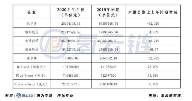 近日,科创板燃料电池“第一股”亿华通发布2020年半年度报告,公司上半年实现营业收入2520.41万元,同比减少62.02%;归属于上市公司股东的净亏损6350.77万元,去年同期则为净亏损2380.53万元;归属于上市公司股东的扣除非经常性损益的净亏损6420.84万元,去年同期则为净亏损4023.05万元。 表1 亿华通半年度报告 据了解,亿华通是一家专注于氢燃料电池发动机系统研发及产业化的高新技术企业,公司主要产品为氢燃料电池发动机系统及相关的技术开发、技术服务,目前主要应用于客车、物流车等商用车型,公司与国内主流的商用车企业宇通客车、北汽福田、中通客车、申龙客车以及吉利商用车等建立了深入的合作关系,搭载公司发动机系统的燃料电池客车已先后在北京、张家口、郑州、苏州、成都等地上线运营。 图1 亿华通燃料电池系统 1、氢能与燃料电池产业市场中汽协数据显示,2020年1-7月燃料电池汽车产销数据分别为397辆和407辆,同比分别下降66.1%和63.2%。2020年7月份燃料电池汽车产销分别为7辆和4辆,而2019年7月份燃料电池产销分别是6辆和4辆。实际上,2月销量甚至挂了零 ,7月份还不算是全年最低点。 虽然销量惨淡,但截止7月,国内各地方政府大量发布的氢能产业政策数量超过40个,政策堪比股票市场行情!形成了明显的“政策多、资本热、市场冷”的现象。 图2 2019-2020年燃料电池产销情况 而从氢燃料电池装机情况来看,自2018至2019年上半年以来,上海重塑、上海电驱动、国鸿重塑、亿华通等四家企业装机功率达到68.47MW,CR4已经达到70.55%,头部效应初显。 表2 燃料电池企业装机功率top10企业 数据来源:动力电池应用分会 氢云链整理