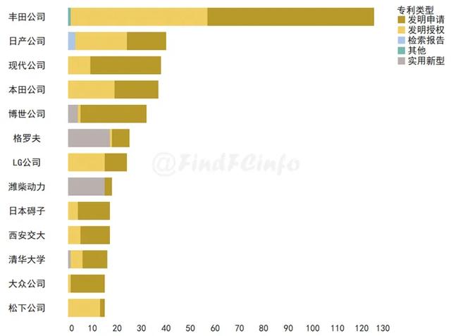 导读 各位读者大家好,2020年7月燃料电池全球专利监控报告全新发布。本期监控报告的内容主要包括三个部分,分别为: 1、2020年7月燃料电池领域公开专利整体情况介绍; 2、国内申请人专利公开情况介绍; 3、部分申请人介绍及其公开专利解读,具体包括丰田公司燃料电池输出功率控制以防止质子交换膜过于干燥而导致电池性能大幅下降,金属双极板制造过程中防止涂层剥落对隔板加工精度造成影响以及电堆密封圈异常检测;本田公司燃料电池活化方法;博世公司氢气配量阀结构。 一、整体情况介绍 1.1 专利公开地域情况2020年7月,燃料电池领域在全球范围内公开/授权的专利共1296件,较上月相比(1231),数量有一定增加。本月,中国地区专利公开数量与上月(668)有一定增加,发明授权专利较上月(89)有一定增加。部分公开国家/地区/组织以及数量情况如图1-1所示。 图1-1 部分地区燃料电池专利7月公开/授权情况 1.2 专利技术分支情况 图1-2 燃料电池专利7月公开/授权的技术分布 1.3 申请人专利申请情况 将专利申请人经过标准化处理后,对标准化申请人的专利申请数量进行统计,如图1-3所示。本月,丰田公司公开专利125件,其中发明申请和发明授权数量分别为68、56件;日产公司公开专利40件、现代公司公开专利38件、本田公司公开专利32件,其中日产公司授权公告的发明专利共计21件;格罗夫公开专利25件,其中实用新型专利占17件;潍柴动力公开专利18件,实用新型专利共计15件;西安交通大学公开专利17件、清华大学公开专利16件。 图1-3 标准化申请人专利7月公开/授权排名 在燃料电池用阀方面,上海杰宁新能源公开了一种氢燃料电池供氢阀组的组合设备;博世公司公开了一种用于控制气体介质的配量阀及喷射泵单元;上海捷氢公开了一种用于排氢的电磁阀,具有结构简单、低温启动效应快等特点。江苏国富氢能与张家港氢云共同申请了用于氢气瓶的瓶口阀,具体包括瓶口阀的进出气结构、泄压装置、组合阀等;上海舜华公开了5件与储氢瓶瓶阀有关的技术,包括高压氢气手动截止阀、电磁阀主阀、超高压先导式电磁阀等;行云新能科技公开了一种用于高压氢气瓶的瓶阀组件。现代公司公开了一种燃料电池系统用空气切断阀装置。 二、国内申请人专利公开情况 2.1 国内整车厂7月专利公开情况 图2-1 整车厂7月专利公开情况 国内整车厂在7月的专利公开情况如图2-1所示。其中,格罗夫公开专利25件,主要涉及系统控制、整车、热管理、排放回收等。中国一汽公开8件专利,主要涉及电堆结构与电堆组装、双极板、动力系统等;东风汽车公开专利6件,主要涉及燃料电池系统怠速控制、低温启动加热装置、氢泄漏检测等。其他在7月公开相关专利的整车厂还包括上汽集团、武汉泰歌、江铃汽车、北汽集团、长城汽车、金龙汽车、宇通客车、中国重汽等。 2.2 燃料电池企业7月专利公开情况 图2-2 燃料电池企业7月专利公开情况 国内燃料电池企业在7月的专利公开情况如图2-2所示。潍柴动力公开专利18件,主要涉及燃料电池热管理,系统控制等。深圳世椿公开专利14件,主要涉及石墨板贴合治具与浸胶罐,金属双极板自动化生产线、点胶自动固定装置,气体扩散层上料装置以及膜电极制备设备等。银隆新能源与上海治臻均公开10件专利,其中上海治臻与上海交通大学、未势能源共同申请了两件专利,具体涉及电堆装配与金属双极板制造。其他在7月公开相关专利的企业还包括江苏国富氢能、张家港氢云、上海舜华、上海垂虹金属制品、深圳氢蓝时代、锋源氢能、魔方新能源、格力电器、上海捷氢等。 2.3 科研院所(校)7月专利公开情况图2-3 燃料电池科研院所(校)7月专利公开情况 燃料电池相关科研院所(校)在7月的专利公开情况如图2-3所示。其中,西安交大公开专利17件,主要涉及加氢站用离子液体压缩机、金属支撑型固体氧化物燃料电池结构、密封等;清华大学公开专利16件,主要涉及燃料电池寿命检测、衰退诊断等;上海交通大学公开专利9件,主要涉及透气双极板、质子交换膜以及催化剂制造等。其他在7月公开相关专利的科研院所(校)还包括吉林大学、太原理工大学、大连化物所、华中科技大学、同济大学等。 来源:燃料电池专利报告 |