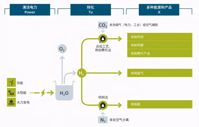 西门子能源氢能白皮书中,还通过介绍氢能产业发展前沿与市场前景、发展零碳绿氢的必要性与竞争力展望和Power-to-X(多维能源转换体系)技术方案,论述了氢能产业在成本、技术、模式等方面的可行性,描绘了通往“氢能社会”的产业路径。为加快推动国内氢能产业的发展和解决氢能产业发展难题,国内企业需汲取知名能源企业的经验、技术和产业协作能力。 1、西门子能源的氢能愿景西门子能源,作为世界上唯一一家能够为整体能源转换链提供完整的产品、解决方案和服务的供应商,凭借其众多领先的关键技术和产品涵盖整个能源价值链。其技术广泛应用于能源的开采、加工和运输,集中式与分布式发电和供热,输电领域以及包括储能与行业耦合解决方案在内的清洁能源转型技术。 西门子能源大中华区业务负责人姚振国曾表示:“西门子能源公司在清洁能源领域拥有先进的技术和丰富的经验,我们正在从技术创新、解决方案、数字化服务等方面积极推动和提升氢能应用的深度和广度,助力清洁能源的供应和消费占比及使用效率的提高,从而为应对全球气候变化及碳排放的降低做出切实的贡献。以清洁能源驱动经济的发展和生态的平衡,是我们企业的责任,也是西门子能源的使命。” 引领全球能源体系的去碳化是西门子能源的主要目标之一,西门子能源已经有超过50%的业务整合实现了去碳化。西门子能源认为,未来的气候友好型能源系统需要配备高效的储能系统,以平衡可再生能源的波动,使之成为去碳化的关键驱动力。 氢能兼备了去碳化和与可再生能源高度契合的双重优点。氢能具备极高的环保价值,同时作为综合智慧能源图谱中的重要一环,氢能可以解决未来能源生产、存储和运输环节中的诸多挑战。氢能及衍生燃料可以实现大规模长周期、具备经济性的储能。可再生能源,如风电、光伏等往往具有随机性、波动性、阶段性等问题,通过氢储能的方式可以解决大规模可再生能源的消纳问题。此外,氢能还可以与不同类型能源相互转换,能够作为能源间转换的桥梁,成为能源互联网的关键节点。 图2 氢能来源, 资料来源:氢云链整理 2、西门子能源的氢能方案“从油气到发电、输配电再到相关服务业务和新能源,将这几块业务整合并作为能源公司上市,意义在于打通了能源产业链,实现能源整体转型的能力随之提高。”姚振国先生如此表示。西门子能源将以Power-to-X(多维能源转换体系)作为工具,打破不同能源体系和业务板块间的隔阂,构建一个新的能源互联网帝国。氢能就是实现不同能源间转换的绿色、高效转换的关键,是整合区域内煤炭、石油、天然气、电能、热能等多种能源,实现多种能源子系统之间相互转换的纽带和桥梁。 图3 西门子能源Power-to-X解决方案, 来源:《西门子能源氢能白皮书》 早在十多年前,西门子能源已经开始对氢能的研究与应用,利用PEM水电解制氢技术以及Power-to-X解决方案在全球提供清洁、高质量的氢能源。如今,西门子能源已经能够提供光伏电站、风力发电机、制氢电解器、氢燃料燃气轮机、含氢电制燃料合成设备等各类产品,并进行一系列产品组合。 表1 西门子能源氢能产业技术布局情况, 资料来源:氢云链整理 虽然西门子能源所颁布的氢能白皮书标题为《迈向无碳未来 — 氢能引领去碳化进程》,但白皮书实际提供的不仅仅是氢能解决方案。基于Power-to-X,从可再生能源或燃气发电厂的发电与供热,到输配电,到电解水制氢和化工合成,再到氢能应用的链条,形成了完整的去碳化能源产业链解决方案,已然是能源互联网业务的雏形。 3、西门子能源的产业实践结合自身深厚的能源产业积淀和Power-to-X解决方案,西门子能源在氢能领域的各个环节进行了丰富的产业实践。 (1) 示范项目: “美茵茨能源园区”项目于2012年启动,2015年建成投运,2017年进入商业化运营阶段,其主要目标是开发,测试和应用可再生能源制氢的创新技术。该项目连接了市政公司的中压电网及其4个风电场,将“过剩”风电通过三台西门子能源PEM电解水装置Silyzer200制氢并存储。这是全球首个兆瓦级别的电解水制氢工厂,最大功率达6兆瓦。美因茨项目不仅涵盖风电制氢-加氢站/天然气管网全产业链示范,涉及电氢平衡、交通与工业平衡两大核心问题,实现以氢为媒介打通电网和天然气管网和可再生能源的充分利用。该项目在2018年已成功实现盈利。 (2) 发电领域: 2019年,西门子天然气和发电公司公布了引领产业的燃氢路线图,并计划在2020年将燃气轮机燃料中的氢含量提高到至少20%,到2030年提高到100%。 (3) 储能领域: 2018年西门子能源启动了第一家将电力、水和空气无碳转化为氨气的工厂,将氨气储存在储罐后,用于发电、车用燃料或工业制冷。通过该项目西门子证明了氨气储能系统的可行性及其在化工领域的技术优势,展现了Power-to-X丰富的想象空间和氢能广阔的应用空间。 (4) 交通领域 西门子能源在多个交通领域展开了氢能的尝试。如在轨道交通领域,西门子能源与西门子交通将共同开发并提供氢动力体系;船运方面,西门子能源和Power Cell开展合作,共同开发基于燃料电池的船舶能源供应系统。 在海外地区,西门子能源与SPIC Brasil建立了合作伙伴关系,提供创新技术和管理方案以协助天然气发电项目的运营。而在中国地区,虽然中国是目前最大的可再生能源
