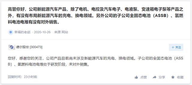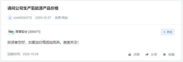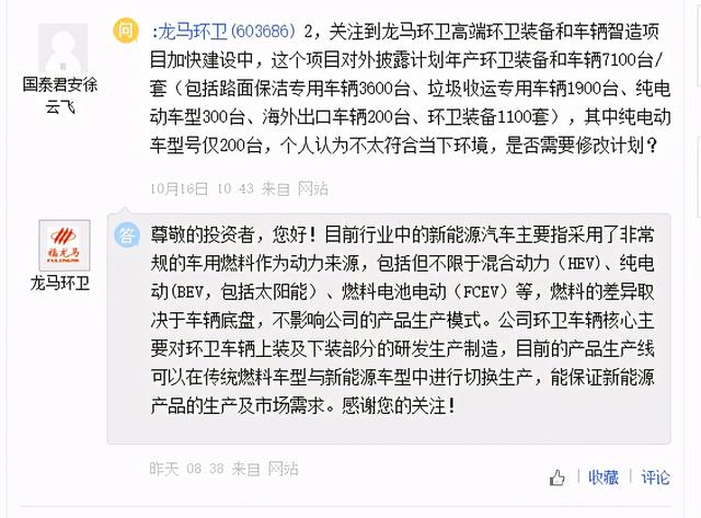 「氢问董秘」是氢云链旗下的全新栏目,主要包含投资者在互动平台上针对氢能、燃料电池等内容方面进行提问和相关企业的回复,每天一期。在这里,你可以全面了解企业的氢能发展动态。 龙马环卫问: 关注到龙马环卫高端环卫装备和车辆 龙马环卫答: 尊敬的投资者,您好!目前行业中的新能源汽车主要指采用了非常规的车用燃料作为动力来源,包括但不限于混合动力(HEV)、纯电动(BEV,包括太阳能)、燃料电池电动(FCEV)等,燃料的差异取决于车辆底盘,不影响公司的产品生产模式。公司环卫车辆核心主要对环卫车辆上装及下装部分的研发生产制造,目前的产品生产线可以在传统燃料车型与新能源车型中进行切换生产,能保证新能源产品的生产及市场需求。感谢您的关注! 德尔股份问: 高管你好,公司新能源汽车产品,除了电机、电控及汽车电子、电液泵、变速箱电子泵等产品之外,有没有布局新能源汽车的充电、换电领域。另外公司的子公司全固态电池(ASSB)、氢燃料电池电堆有没有对外销售。 德尔股份答: 您好,感谢您的关注,公司产品目前尚未涉及新能源汽车的充电、换电领域。子公司的全固态电池(ASSB)、氢燃料电池电堆处于研发阶段,未对外销售。 厚普股份问: 请问公司生产氢能源产品价格 厚普股份答: 投资者您好,加氢站价格因站而异。谢谢关注! 编辑:氢氢我心 校对:风 免责声明:本文观点不构成投资建议,请谨慎对待 |