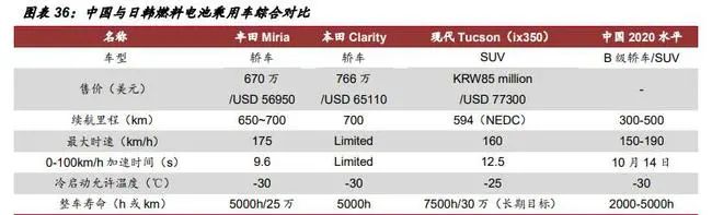乘用车发展缓慢,发展集中于商用车 我国车载燃料电池车以商用车和专用车主导。从今年初至今 11 个批次新能源汽 车推广目录来看,其中燃料电池汽车车型以客车及专用车为主,燃料电池乘用车车型 与国际燃料电池汽车发展相比,国内燃料电池乘用车产业化发展缓慢。主要由 于两方面的原因,一方面,我国燃料电池堆的技术水平还达不到乘用车的水准,经济 性方面仍无法与目前的燃油车、纯电车相媲美。另一方面,燃料电池车的推广离不开 加氢站的建设。加氢站配套的不足直接导致下游需求的弱化,车企没有动力向乘用车 领域进行研发和推广。