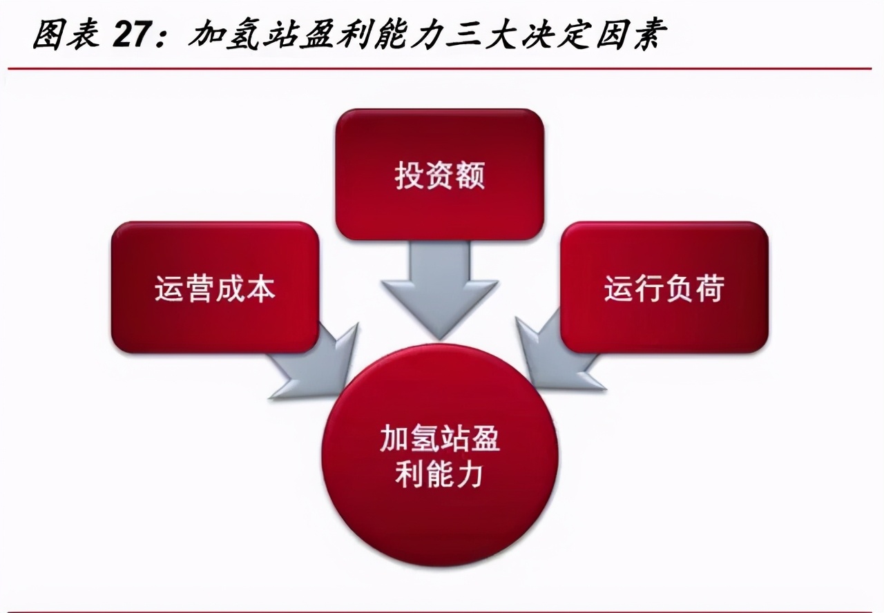 加氢站主要设备倚靠进口,关键技术国产化进程有待加速 典型的外供氢的高压气氢加氢站投资组成中,除去土建及,设备费用占据最大比 例,主要是压缩机、储氢瓶、加氢和冷却系统,由于国内缺乏成熟量产的加氢站设备 厂商,进口设备推高了加氢站建设成本。目前建设一座 35MPa,500kg/d 固定式加 氢站的投资成本约为 1500-2000 万元,即使扣除政府补贴的 300-500 万元,加氢站 投资成本依然是传统加油站的 2~3 倍。虽然中国所生产的加氢站设备各项技术指标 仍有欠缺,但是目前国产化已经开启,业内企业在各领域均推出自主产品。